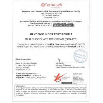 Extremely low GI (Glycemic Index) of 18 as certified by the Glycemic Index Research Unit, Temasek Polytechnic.