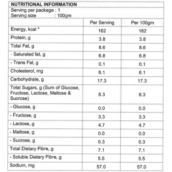 Ingredients: Fresh Milk, Inulin Soluble Fibre, Coconut Oil, Xylitol, Cocoa Powder, Maltitol, Skim Milk Powder, Olive Oil, Chocolate Flavouring, Stabilizers and Emulsifiers